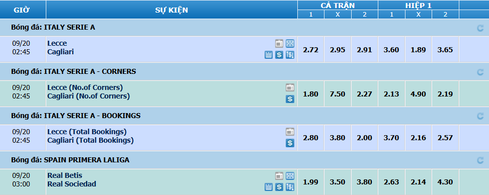 - Tài/Xỉu phạt góc…